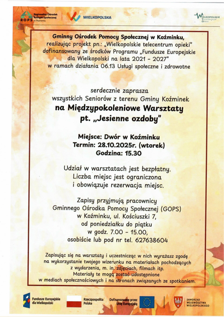 Międzypokoleniowe Warsztaty – „Jesienne ozdoby” w ramach projektu „Wielkopolskie telecentrum opieki” 24 października 2025